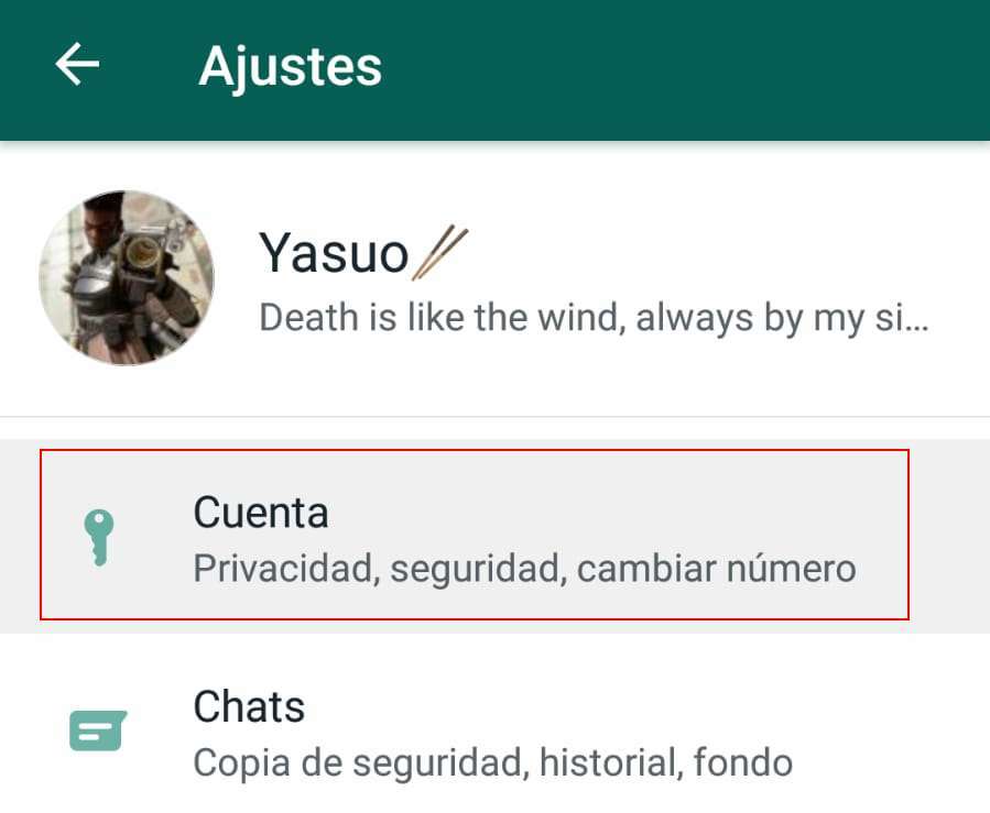 Nos dirigimos a Ajustes > Cuenta > Verificación en dos pasos
