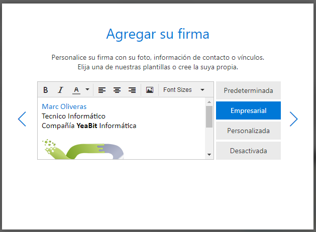 Nos dará la bienvenida y nos explicará un poco como personalizar nuestro correo para sentirnos cómodos y nos explicará un poco como funciona para que podamos manejarnos de forma rápida y sencilla.