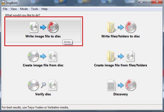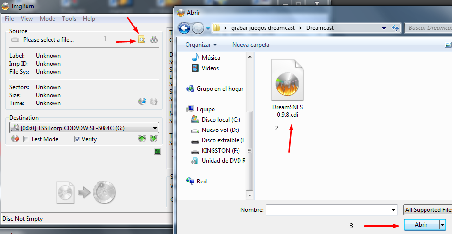 Abrimos IMG Burn y seleccionamos > Write image file to Disc (Grabar imagen en disco) > Seleccionamos la imagen del juego de dreamcast.