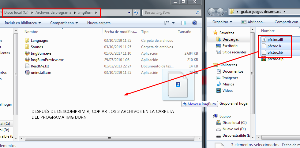 Una vez instalado tenemos que copiar los archivos de la extensión que hemos descargado en la carpeta del programa «por defecto es C:\Program Files\ImgBurn» si pide permisos aceptar.