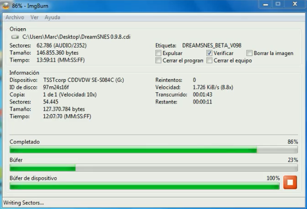 • Ese mismo problema lo tuve, en una laptop Toshiba Satélite queme con disco a data (económico) y Discjuggler y el resultado fue nulo (antes en esa misma laptop con Win 7 y Discjuggler me daba muy buenos resultados). Probé con CD-R imation de mejor calidad y con Alcohol 120% y los resultados fueron mixtos, pero si pude quemar algunos juegos y que corrieran en la Dreamcast. Te recomendaría que cambies a los otros programas para Imgburn o Alcohol en el quemador que consideres que trabaja mejor y con el CD que consideres que sale mejor «quemado». Toma en consideración que la gente del foro ya tiene algo de experiencia en el quemado de juegos para la Dreamcast. También se sugiere que cambies a una ISO que consideres mas «estable», a veces las imagenes que se bajan ya no son tan «estables» o vienen quizás con algún error. Se paciente, todo este esfuerzo vale la pena. Creo que el colmo es que actualmente venden compilaciones de estos juegos como el de King of The Figthers, plop!