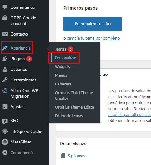 Para añadir una nueva pagina vamos a: Paginas > Añadir nueva