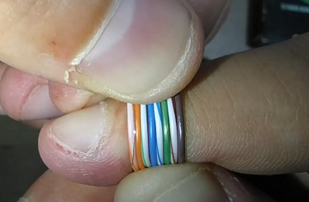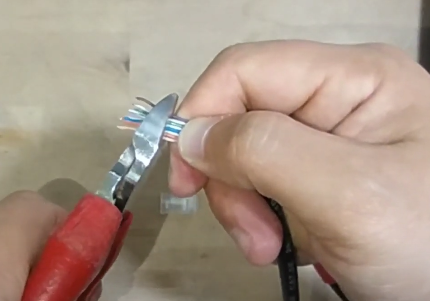 Tenemos que sacar la funda exterior que cubre los 4 pares de cables que conectaremos, hay que ir con mucho cuidado de no dañar el cable interior y asegurarnos de que solo cortamos la funda.