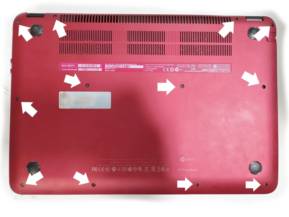 Solo hay que retirar los 12 tornillos que hay en la parte inferior y desencajar las grapas para que salga la tapa de debajo del HP Envy.