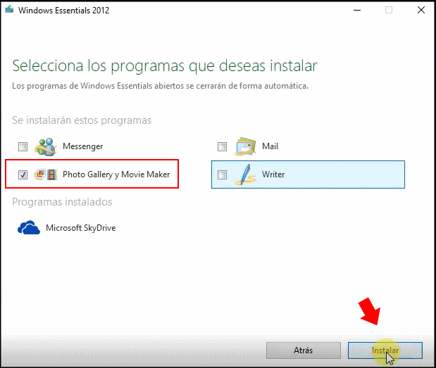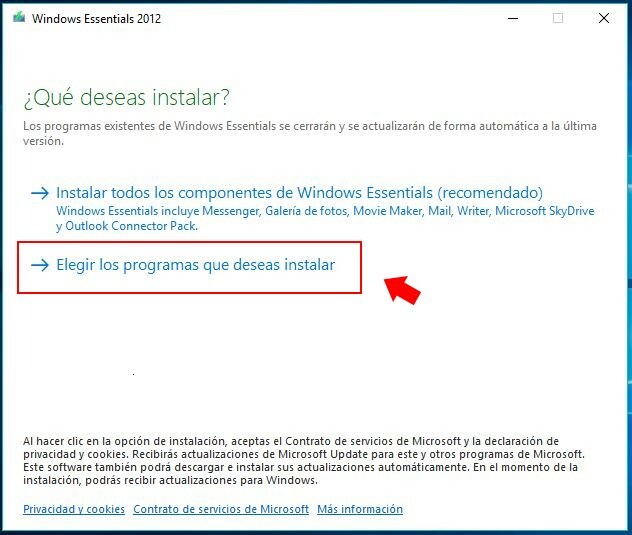 Comenzara el asistente de instalación donde escogeremos, Elegir los programas y marcamos Photo Gallery y Movie Maker, le damos a instalar.