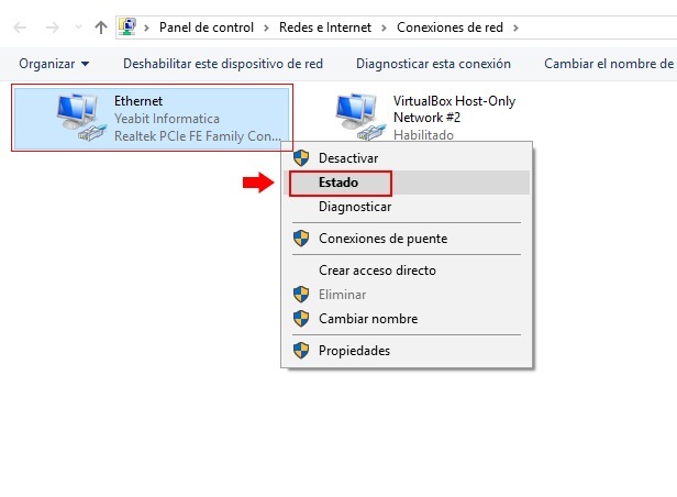 Hacer clic con el botón derecho en la conexión que te interesa y clic en estado.